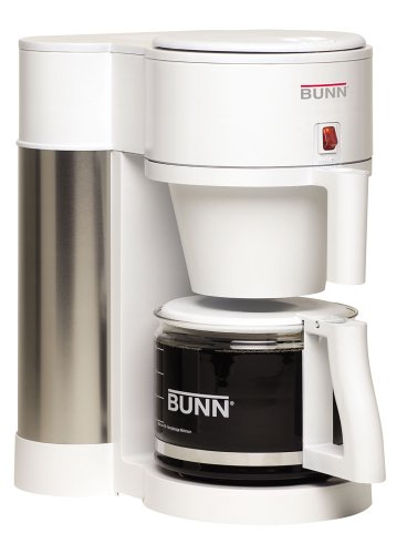 Housed in commercial-grade materials with stainless-steel accents, this unique reservoir-style home-brewing system makes up to 10 cups (50 ounces) of coffee in just three minutes, plus it keeps hot water available for tea or other uses as needed. The coffee brewer's specially designed stainless-steel water tank features an internal thermostat, which keeps water at an ideal temperature for maximum flavor and fast brewing. In addition, the unit's patented sprayhead design improves coffee-flavor extraction, while its porcelain-coated warming plate with a lighted "on/off" switch helps keep brewed coffee at the optimal serving temperature for hours. Other highlights include a convenient sliding lid for easy addition of brew water, a durable glass decanter with a generous handle, and a vacation switch to turn the tank heater off when the brewer will not be used for a long period of time. The home coffee brewer measures 11-3/5 by 9 by 13-2/3 inches and carries a three-year limited warranty.