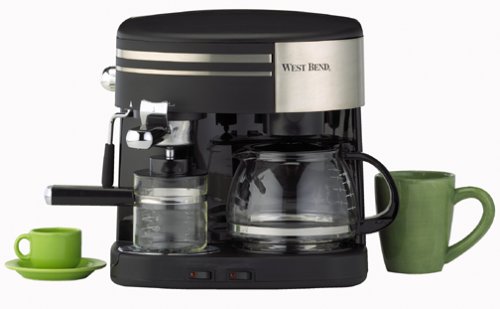 Makes 4 cups of Espresso/Cappuccino and 10 cups of coffee Removable cone shaped filter basket Steam nozzle to froth milk Clear water and coffee ground markings Easy-to-clean Dishwasher-safe glass coffee carafe and espresso carafe
