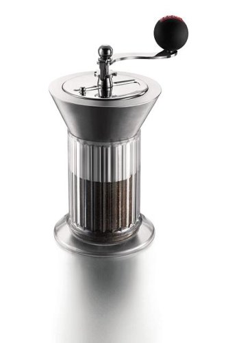 This stylish hand coffee grinder by Bodum is made is wood and plastic. It features an adjustable grind control and easy-to-fill container holds that enough beans for an 8 cup BODUM coffee maker. The container has a bayonet cap fitting which is dishwasher safe. The opening on the top slides for easy fill of coffee beans. Luxury coffee grinders are perfect Christmas, Birthday or anniversay gifts.