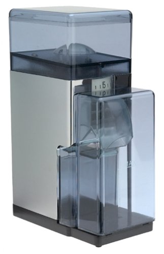 These attractive La Pavoni grinders feature chrome color cases to match your espresso machines. La Pavoni PGC grinders operate two ways. For daily serving applications grind directly into your portafilter or for larger amounts of coffee grind directly into the removable hopper. Features: Tempered steel burr grinders. chrome finish. 9 settings from coarse to fine. 1/4 lb. hopper capacity. Automatic shut-off. Measures 9 ½" high weight 8 lbs. Volt 110 One year warranty. Not recommended for commercial use or continual grinding. Made in Italy. Luxury coffee grinders are perfect Christmas, Birthday or anniversay gifts.