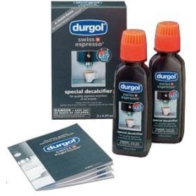 Durgol Swiss Espresso is a special decalcifier which decalcifies all types and brands of espresso machines at the highest level of quality. Compared to vinegar and competing descaling solutions, Durgol IS far more efficient and effective at removing scale build up. Durgol Decalcifying Liquid is also recommended by Capresso for many Capresso Coffee/Espresso Machines (check your manual for recommendations). Durgol swiss espresso decalcifier includes two 125 ml single use bottles in a box. Overview: durgol® swiss espresso® is a special decalcifier for quality espresso machines of all brands, including fully automatic machines, semi-automatic machines, manual machines and coffee pod machines. Filter machines, electric water heaters and tea kettles can also be decalcified with durgol® swiss espresso®. durgol® swiss espresso® is highly effective, easy and safe to use and is guaranteed to decalcify quickly and easily without the need to wait for the decalcification process to work. Regular use of this special formula will ensure the optimal quality of your espresso and extend the life span of your machine. durgol® swiss espresso® leaves no residue and after decalcification and rinsing, your machine is completely safe for use. durgol® swiss espresso® is available in a package which contains two single-portion bottles of 4.2fl.oz./125ml each. One single-portion bottle is designed to decalcify one machine once