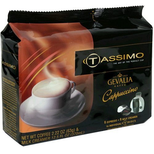 8 Espresso & 8 milk creamer discs. Exclusively for Tassimo system. The art of the perfect cup. Cappuccino: Gevalia Cappuccino is a subtle marriage of the intense taste of Gevalia Espresso and foamed 2% milk. Experience our authentic cappuccino defined by the bold flavor and inviting aroma of espresso, artfully embraced by a frothy layer of milk. The Art of the Perfect Cup: Discover Tassimo, the ultimate in great taste and smart technology. Each perfectly measured T Disc seals in the freshness and flavor until you use it. Simply select your cup, insert your choice of T Disc and press the button. Each T Disc is designed to bring out the optimal flavors, using the right amount of coffee, tea, milk or chocolate for your specific drink. The Tassimo machine reads each encoded T Disc, adjusting the temperature, time and amount of water to guarantee perfect quality each and every time. Experience Exceptional Hot Beverage Variety: With Tassimo, you can savor a variety of hot beverages to suit any mood. At the simple touch of a button, Tassimo lets you enjoy a full range of coffees, including cappuccino, latte, espresso and cream, as well as tea and hot chocolate. Whatever your choice, each cup is freshly brewed to celebrate its true character and give you the taste you love. Story of Gevalia Kaffe: In 1853, in the small seaport town of Gavle, our company was established by Victor Theodor Engwall. A coffee lover himself, he was determined to craft a coffee so rich and full-bodied, it would taste in the cup as exquisite as fine coffee smells at the moment of grinding. True to its European heritage and quality standards, Gevalia Kaffe continues this commitment to a richer coffee experience.