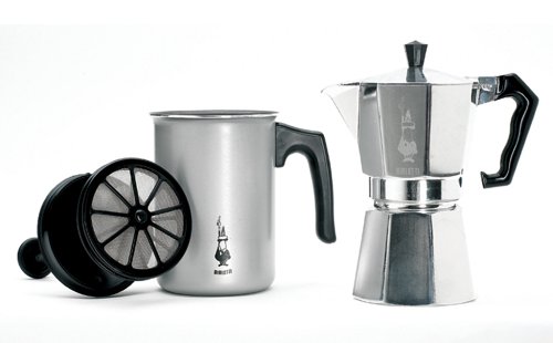 The perfect gift ideal for that special person who loves cappuccinos and lattes. The two-piece set includes Bialetti's best selling 6 cup Moka express, and a 32 oz. non-stick Milk Frother. Specially gift boxed, this is truly a memorable gift!Cup size measured in (1 oz) servings.