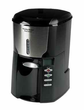 Hamilton Beach Brewstation Plus automatic drip coffeemaker- 12-cup capacity. Internal thermal brewing system- eliminates the carafe, for one-hand dispensing. Coffee stays fresh longer , no hot plate to scorch coffee flavor. New dispenser design is made for use with tall size travel mugs. Includes a Large easy to see digital clock with backlight. Black color base.