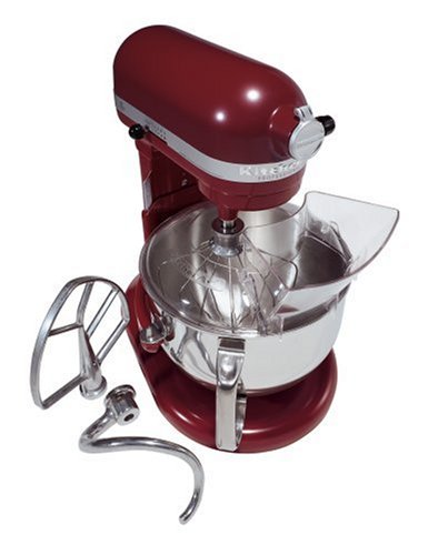 The mixer includes a 6-quart-capacity stainless-steel mixing bowl with a contoured handle, as well as a professional wire whip, a burnished flat beater, a spiral dough hook, and a pouring shield. Its multipurpose attachment hub with a hinged hub cover flips open to allow for easy installation of attachments. The unit's professional bowl-lift design raises the bowl into the mixing position, and its solid, truly seamless one-piece motor head design is easy to clean. The mixer features a premium satin-pearl custom finish that adds an elegant shimmer to any countertop. Available in a variety of fashionable colors, the stand mixer measures 14-3/5 by 16-1/2 by 11-2/7 inches and carries a one-year hassle-free replacement warranty.