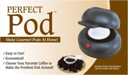 Gourmet Pod Maker Create gourmet, one-of-a-kind coffee blends at home! Pod maker gives you creative control over flavors and strength of coffee and saves money. Create single or double pod, the choice is yours. Blend & seal with the pod maker and you are ready to enjoy specialty coffee using any pod machine (except Tassimo and Keurig). Also use with loose leaf teas. Includes 40 sealable pod paperfilters. Refill set of 40 available. ABS and metal, 11 x 9 x 7 .