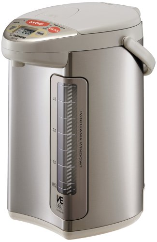 The Zojirushi VE Hybrid Water Boiler and Warmer keeps water hot energy efficiently with vacuum insulation technology. This new items features super VE vacuum-electric hybrid keep warm system. New energy efficient non-electric keep warm. Micro computerized temperature control system. It displays actual water temperature at all times. It is easy to clean with a clear coated stainless steel exterior. It has easy to read large wraparound Panaroma Window water lever gauge. Cafe Drip dispensing mode for slower dispensing and a convenient timer feature (6-10 hours). This unit features a safety auto shut off, easy to hear beep indicator to alert completion of boiling process or low water level.