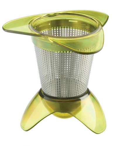 This Tovolo In-Mug Tea Infuser features a unique design which can be used either in a mug, cup, or pot. Whether you are an avid loose leaf tea drinker, or just enjoy it on occasion, this infuser will prove itself in any setting. The vessel is perforated to allow water in for steeping and the top is designed to catch the rim of your mug or teapot, suspending it in the hot water. Once the tea is finished, rest the tea infuser on the base that is included, which will catch any residual drips.