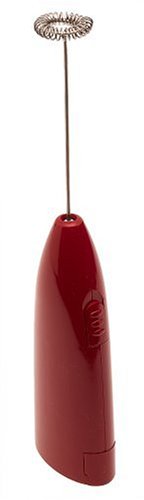 Part of Typhoon's Retro Revolution line of kitchenware, this frother whimsically unites a classic look with modern functionality. The stainless steel whisk head takes just one finger to turn on and off with a conveniently located switch, transforming basic beverages into taste treats in under a minute. Meanwhile, the wide plastic handle fits neatly into the palm with rounded edges and a pleasantly sturdy feel. The entire frother stores easily in a drawer or stands on end between uses to keep work surfaces clean. Displayed on the counter, it really shows off its glossy, vibrant finish and whimsical personality. Add the frother to a full Retro décor or mix and match with more traditional pieces for a wonderfully eclectic look. It comes in a range of striking colors. This piece is easily cleaned by hand washing with soap and water. --Kara Karll