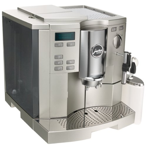 Satisfy a roomful of guests calling for caffeine with the Jura-Capresso Impressa S9, the luxury automobile of home espresso centers. Both beautiful and powerful, the machine grinds, tamps, and brews delicious shots of espresso in 50 seconds and steams or froths milk without a wait. It's built with a dual 1250-watt ThermoBlock heating system, a forceful 18-bar power pump, and a distinctive emphasis on choice. You can steam milk manually or automatically, make drinks with or without foam, and grind for light or dark roasts. You can tailor your drinks' strength (5 to 16 g of coffee), size (1/2 to 16 ounces), and temperature (regular or high). You can even adjust the machine for water hardness, raise and lower the coffee spout, and regulate the separate hot water spigot.