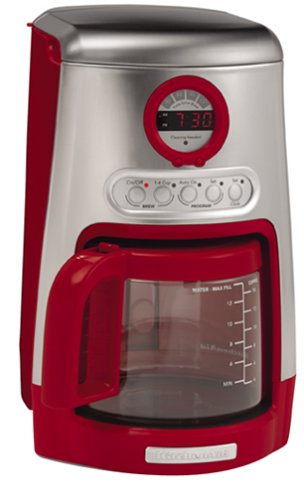 The coffeemaker’s easy-to-set 24-hour digital timer and clock permits any time brewing, day or night, while its pause-and-serve function allows for pouring a cup mid brew. For making smaller pots of coffee without loss of flavor, the unit features a 1- to 4-cup setting. Other convenient features include a "time since brew" display, a Gold Tone permanent coffee filter, automatic shut-off for safety, a cord-storage compartment, and a Clean Touch control pad that is sealed against spills and easy to wipe clean. A cleaning indicator illuminates when the unit requires descaling, and a 14-cup dishwasher-safe glass carafe, coffee scoop, and paper coffee filters are included. The coffee maker measures 14 by 14 by 8-1/2 inches and carries a one-year hassle-free replacement warranty.
