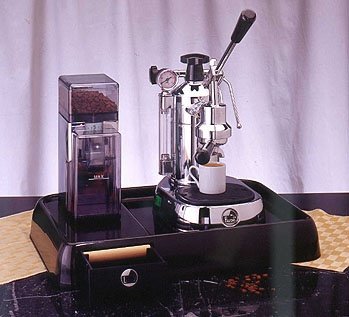 Pictured above with model PC-16. The perfect addition to complete your set. Made of heavy steel and lacquer plated. Fits all lever machines plus area for coffee grinder. Can also can be used with la Pavoni pump model PL-16. Black only. Weight 15lbs.