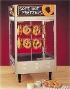 Your pretzels are a real hot item with these attractive merchandisers. Two- or three-tiered racks hold dozens of fresh, toasty pretzels that look absolutely tempting under the infrared overhead lights. For added appeal, merchandisers feature contemporary food prep equipment|Revolving Pretzel Warmer - 27 1/8'| Nemco| Nemco Revolving Pretzel Warmer - 6403| New Nemco Revolving Pretzel Warmer - white finish| New Nemco Revolving Pretzel Warmer - white finishBy Nemco| Nemco - Pretzel Warmer - #6403| Nemco Revol